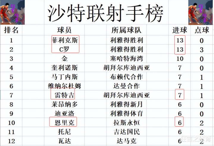 弓手榜方面,利雅得奏效的葡萄牙双枪不息领跑,C罗,菲利克斯13球比肩榜首。金10球排在第2体育赛事直播,雷特吉追上维纳尔杜姆,马丁内斯,7球比肩第4。恩里克点射打入一球,追上莱昂纳多,托尼,6球刚好拥入前十。
